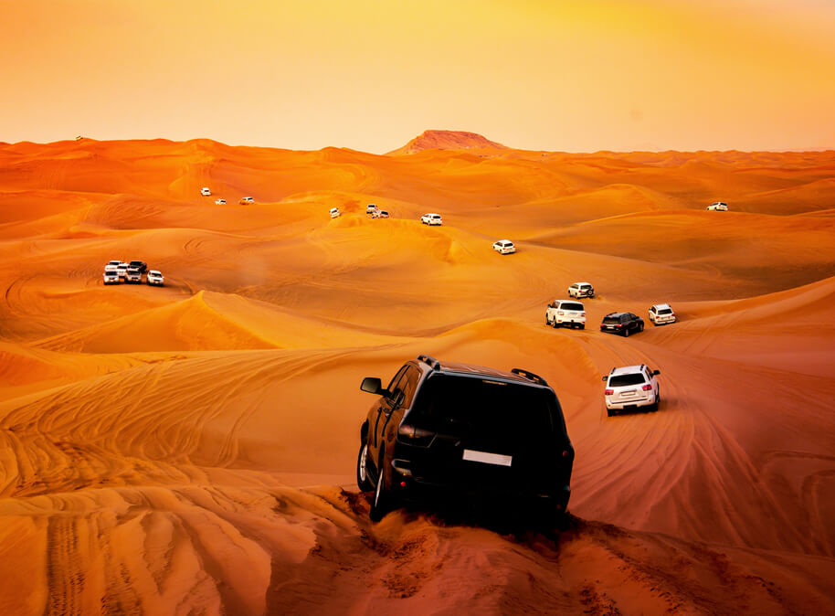 Embark on an adventure across the captivating desert landscapes of Dubai. Our VIP Desert Safari packages promise an exhilarating experience filled with dune bashing, camel riding, sandboarding, and a chance to witness stunning desert sunsets. The evening unfolds with a traditional Bedouin camp setup featuring live entertainment including belly dancing, henna painting, and a delectable BBQ dinner under the starry skies. Our goal is to ensure an authentic and luxurious Arabian desert experience.
