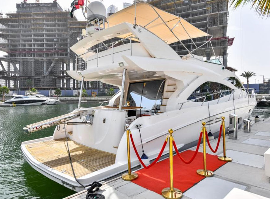 Our yachts redefine opulence, designed to pamper you with comfort and style. From the moment you step on board, you're enveloped in a world of luxury. The sundeck invites you to soak up the sun while our attentive crew caters to your every whim. Whether it's a romantic getaway, a celebration with friends, or a corporate event, our yachts provide the perfect setting. Cruise along the stunning Dubai coastline, taking in iconic landmarks like the Burj Al Arab and the Palm Jumeirah, all while enjoying five-star service and sumptuous amenities. It's not just a yacht rental; it's a journey into elegance and indulgence.