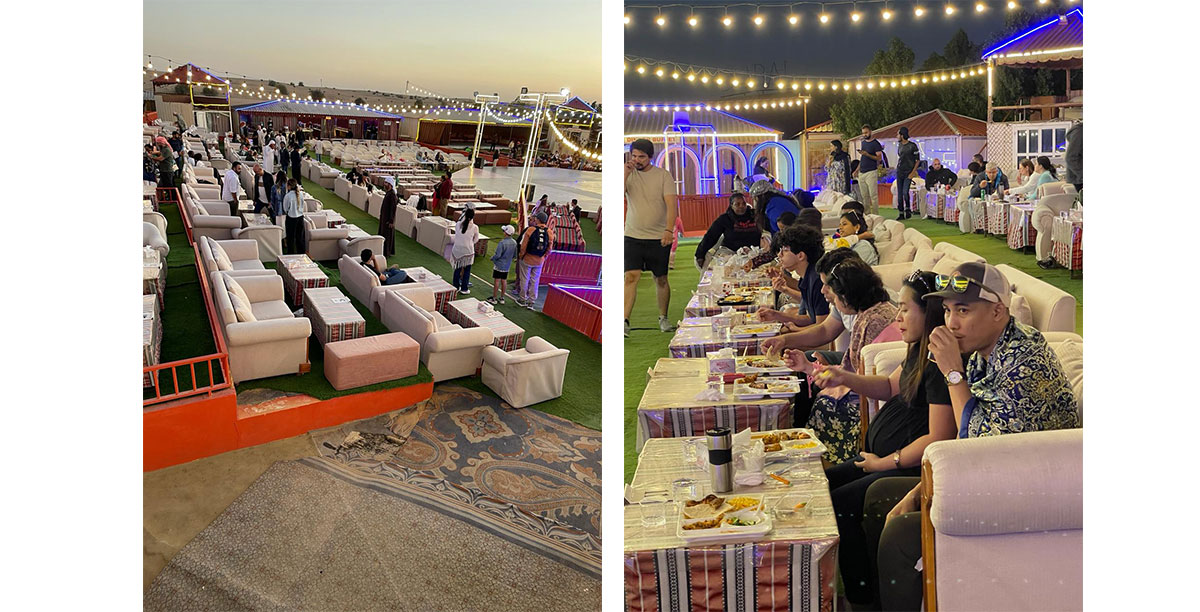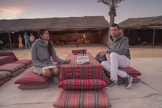 We have special VIP Corner sitting available in our campsite where you will be sitting in the Vip Sofa and the dinner and drinks will be served on your table in VIP style in against the charges of Aed 50 each person so total price for this package will be aed 150 Each persons .